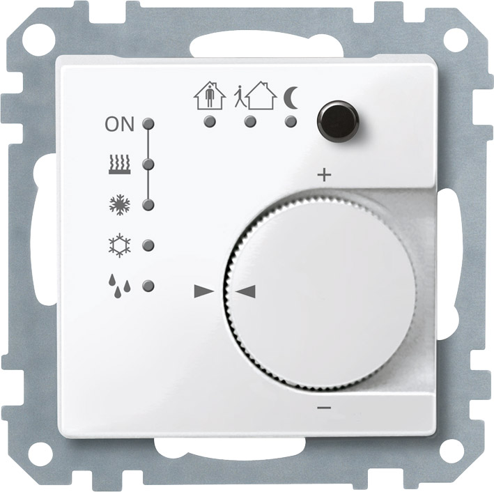 Operation: Setpoint adjustment can be parameterised in the range with adjusting wheel; presence push-button functions can be parameterised/switched off