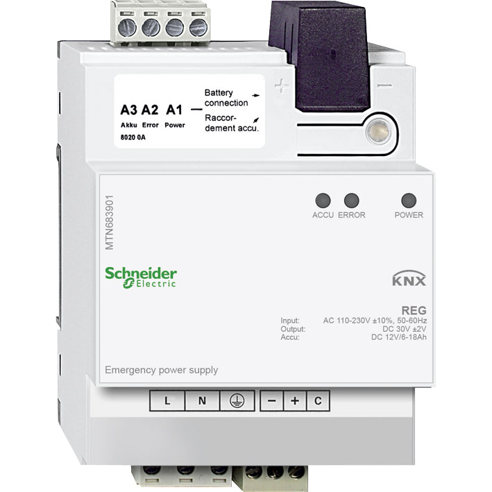 - In KNX, to be completed with: Power supply REG-K/640 mA, art.