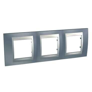 Unica Top - cover frame - 3 gangs, H71 - metal grey/aluminium