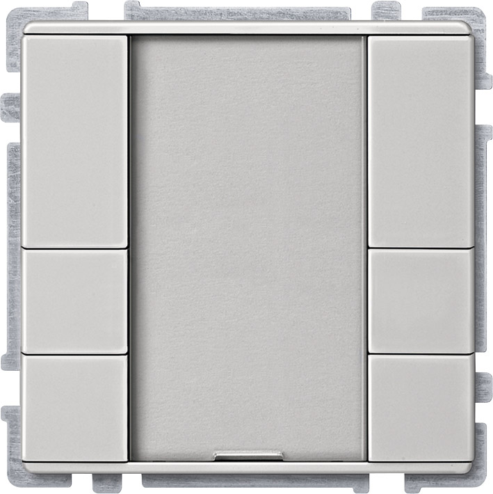 as an additional operating key. The push-buttons are freely parameterisable as push-button pairs (dual-surface) or as single pushbuttons. The device is connected to the bus line with a bus connecting terminal.